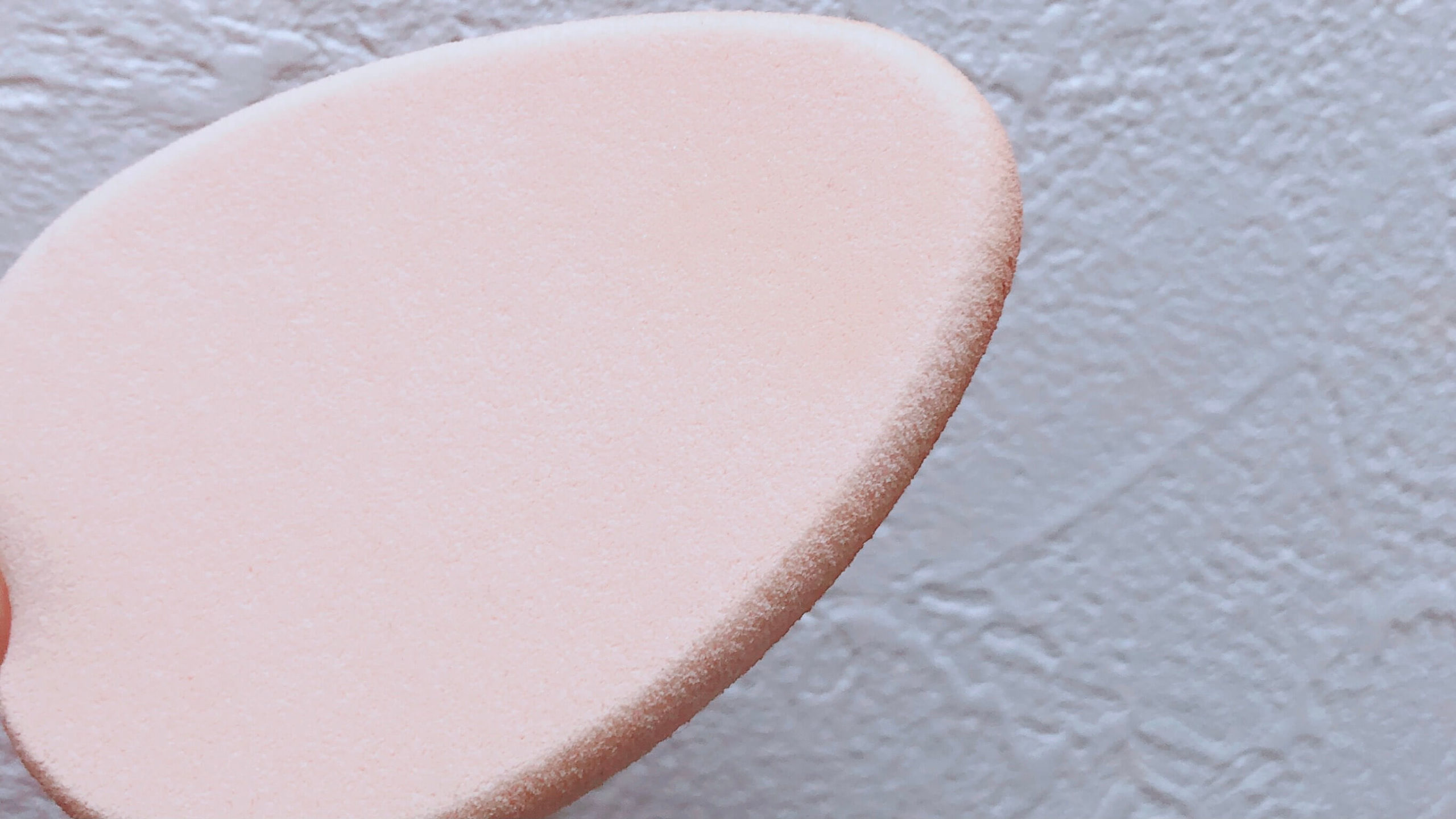 このファンデーションは指付けだとかなり厚塗りになってしまうんですが、このスポンジでつけるとすごく自然にお肌になじんでくれます。