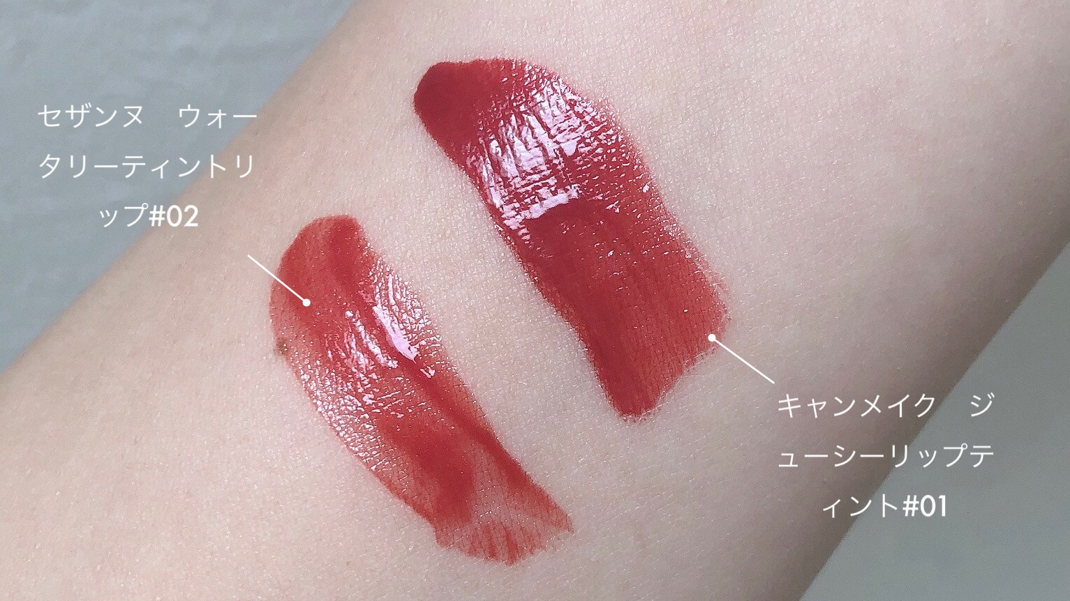 セザンヌのウォータリーティントリップ#02と比べてみました。