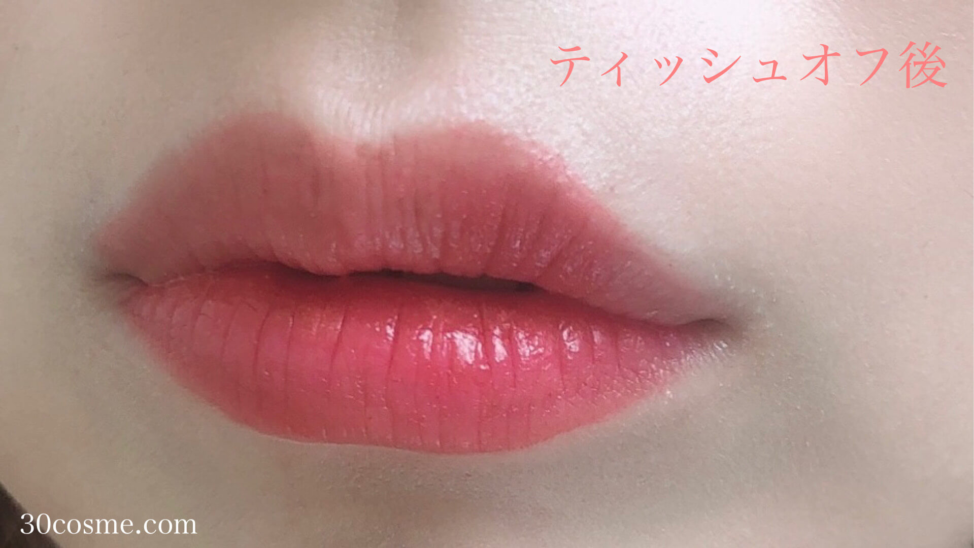 このティントは塗ってから5分おくことで色が定着するようなので5分おいてからティッシュで押さえてみました。