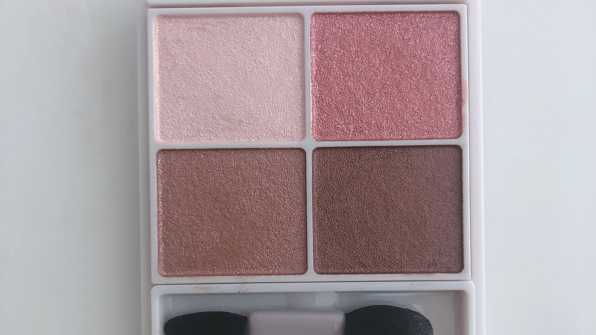 パレット右上のラメが効いたピンクカラーをメインに使うことで少し甘さのある可愛らしい仕上がりになります。