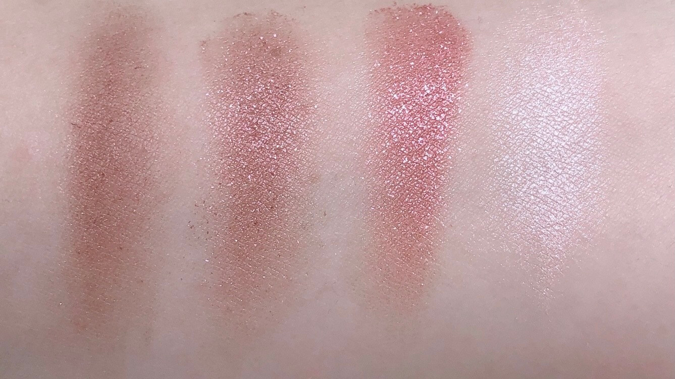 ネットの前評判だと「ブルベ向き」という意見が多かったですが実際塗ってみるとパレット左上の一番明るいカラー以外は程よく黄みも感じられるのでイエベさんにも全然合うんじゃないかなと思います。