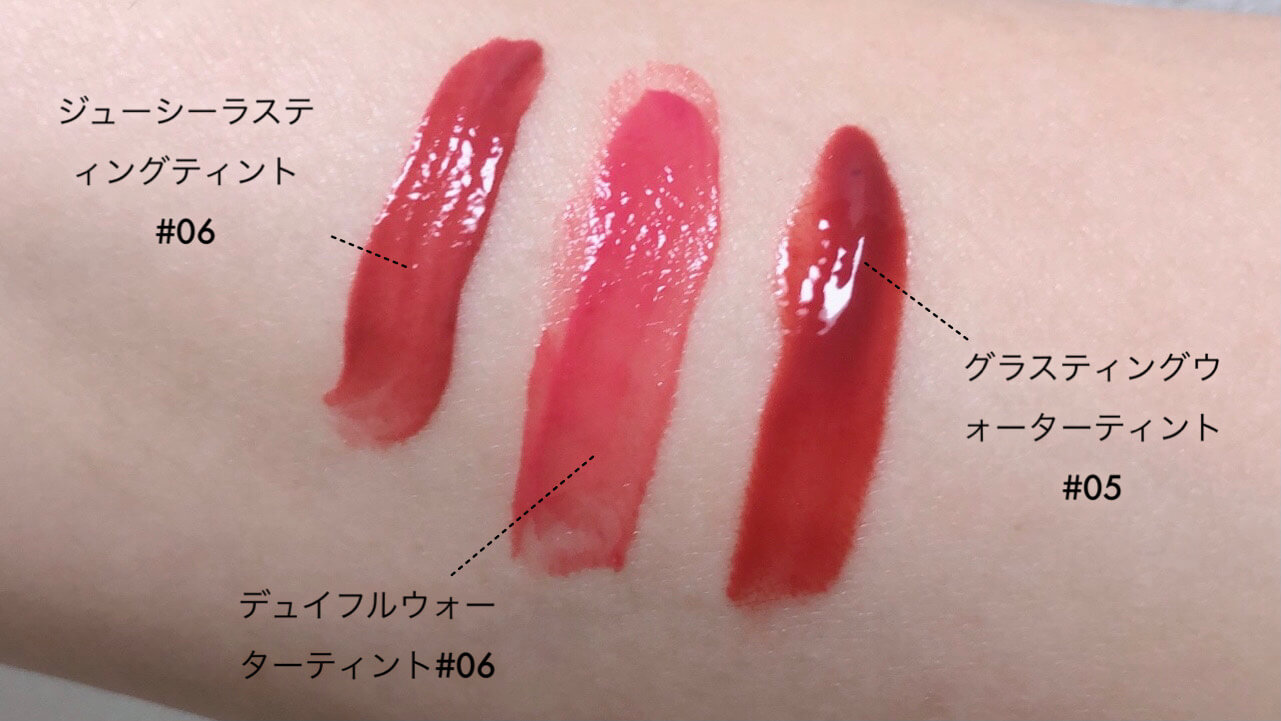 人気のジューシーラスティングティントや、グラスティングウォーターティントとも比較しながらレビューしていきます☆