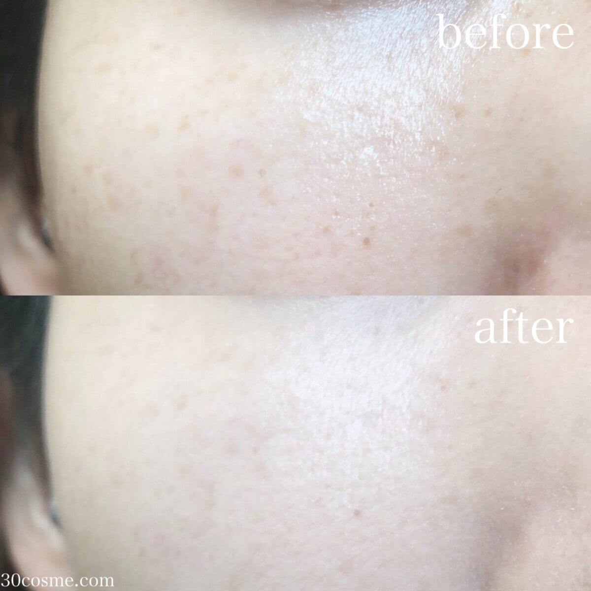 私は頬に乾燥毛穴がぽつぽつ目立つんですが、自然にカバーされて全然気にならない程度になりました。
